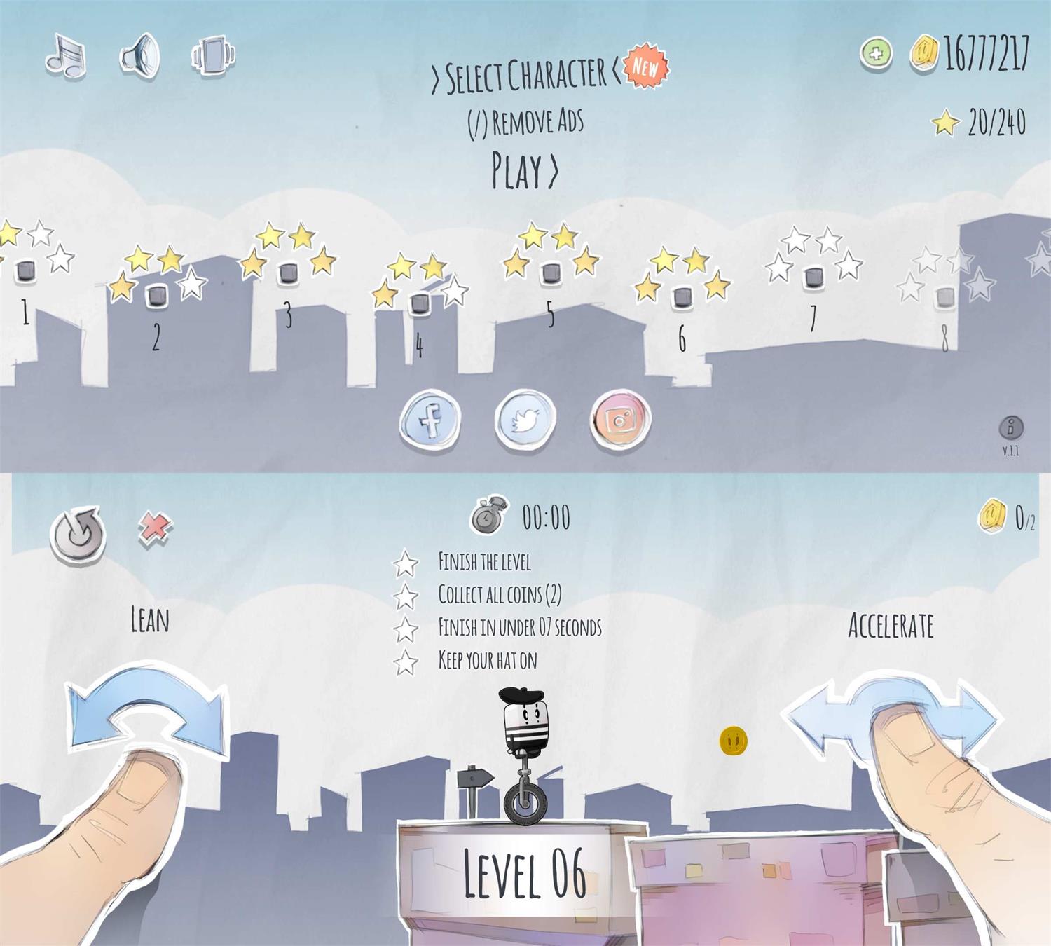 独轮先生是一款娱乐IO闯关游戏。双手同步协同操作,控制小人的平衡,控制平衡的同时向前向后运动,看似简单其实极具挑战姓,超多关卡等你来挑战。得到金钱即可获得大量金钱!