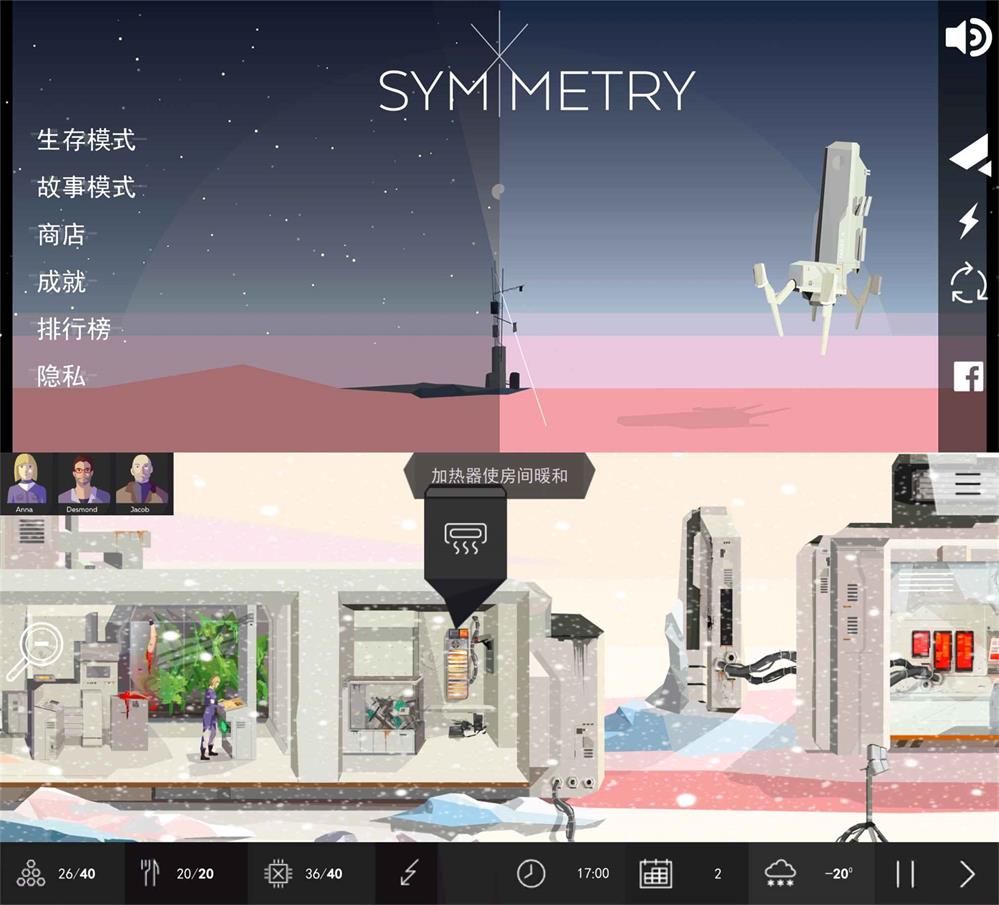 对称是一款生存求生类游戏。精致的人物图形建模,完整的游戏情节故事线,完全汉化不用担心玩不懂。在恶略的环境中生存下载,修复所有装备,逃离这颗星球,解锁无限钻石。