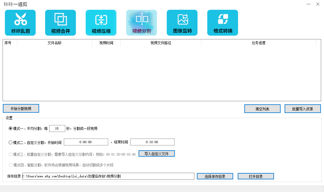 咔咔一通剪由作者自主开发,支持批量处理各种视频,拥有视频合并、视频压缩、视频分割、格式转换等常用的视频处理功能,啥毒软件会误报,使用前请关闭。