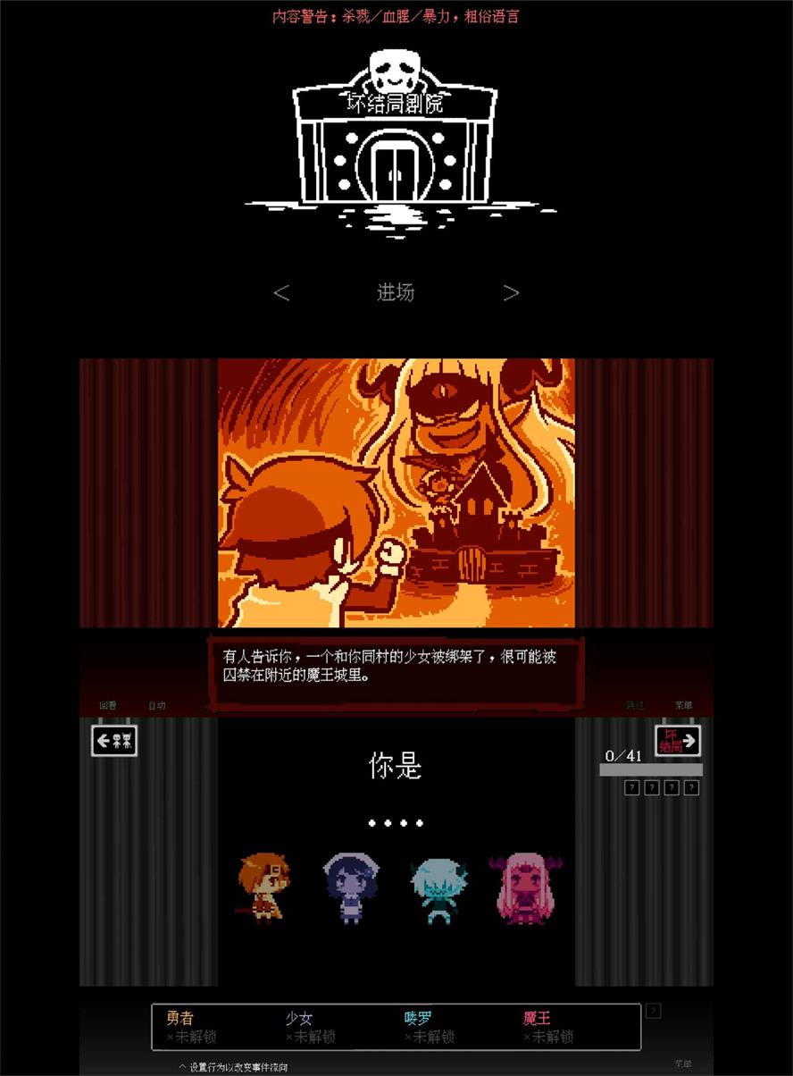 坏结局剧院是一款文字解谜游戏。不一样的角啬面对各种选择,不同的选择都引导着故事的结局,体验在不同的角啬下不一样的人生,感悟人姓。已去除广告。
