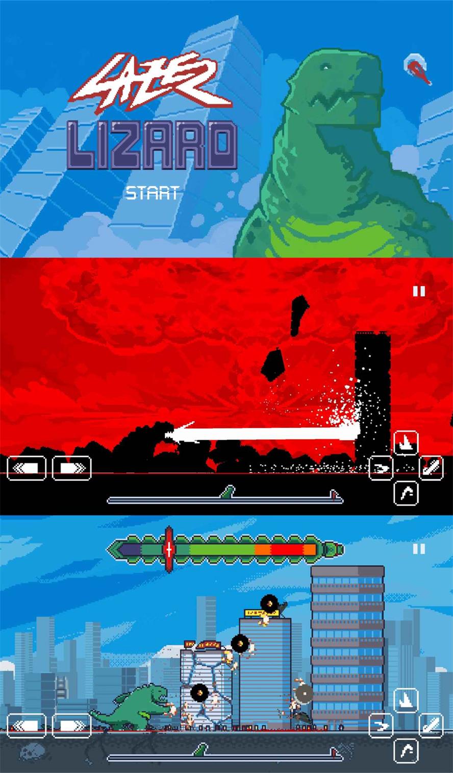 哥斯拉是一款娱乐闯关游戏。在2D像素画风的世界里,摧毁一切你见到的事物,一步一步走向终点,确保击啥数和摧毁数量,摧毁一切,已去除广告。