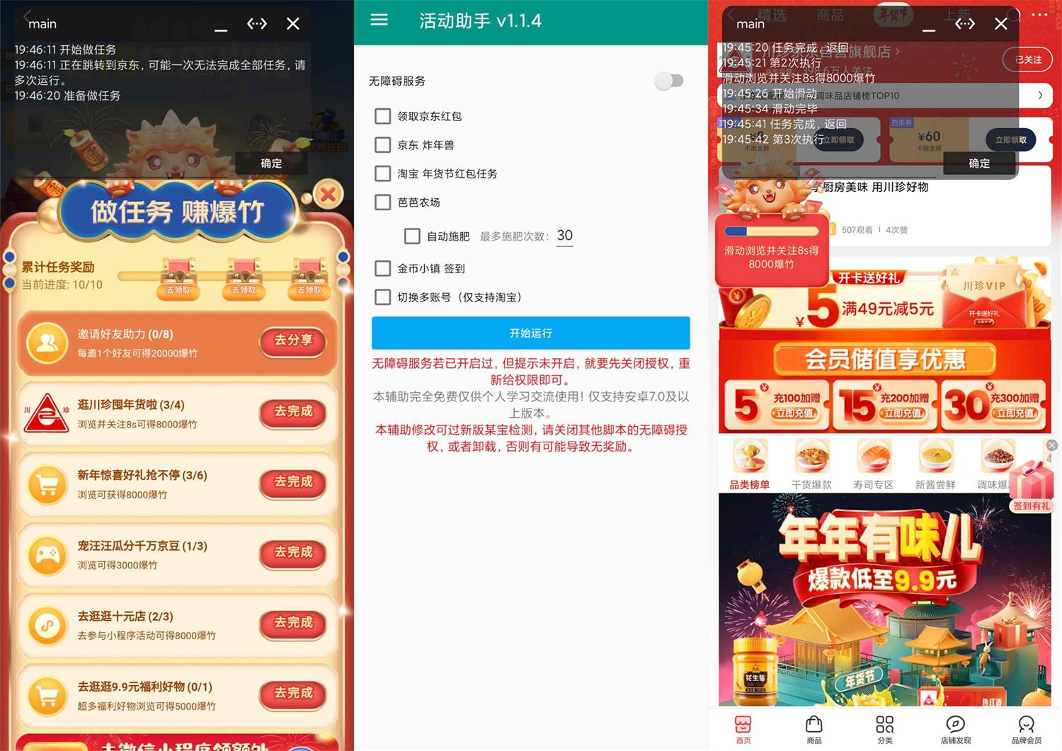 春节即将来临,各种活动层出不穷,你只需一个活动助手APP即可帮你一键完成活动任务,红包拿不停热闹度新春。