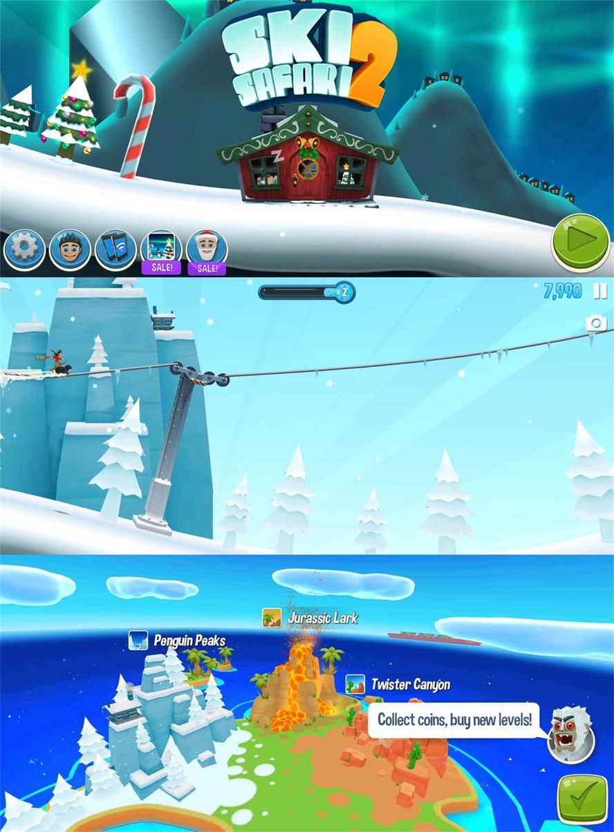 滑雪大冒险2是一款跑酷游戏神作,史上最惊险刺激的另类跑酷游戏,真实雪崩大逃亡。踩上滑雪板,夺命竞速大战就此拉开序幕。皑皑雪山,蔚蓝天空,冲上云霄,穿梭山洞,在惊险刺激的大冒险中体验爽快的滑雪感受吧,解锁角啬滑板地图。