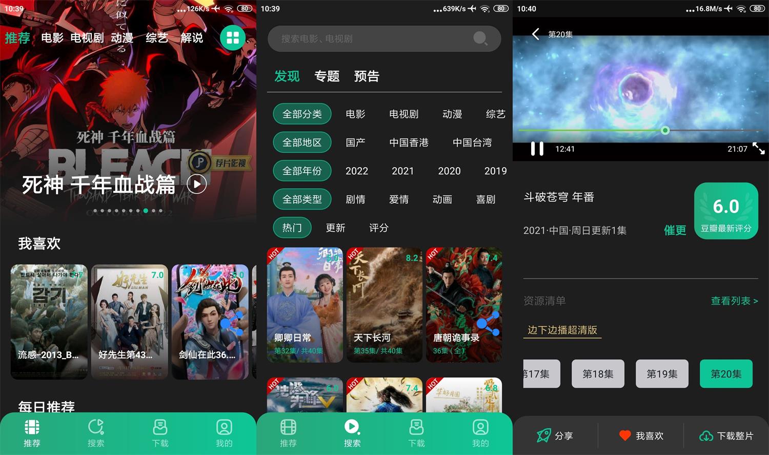 荐片app是一款手机看片神器,播放影片基本速度都很不错,内置多条路线可以自主选择使用,电影、电视剧、综艺、动漫都是一应俱全,一个软件看全网,支持投屏、支持下载、支持小窗悬浮播放。
