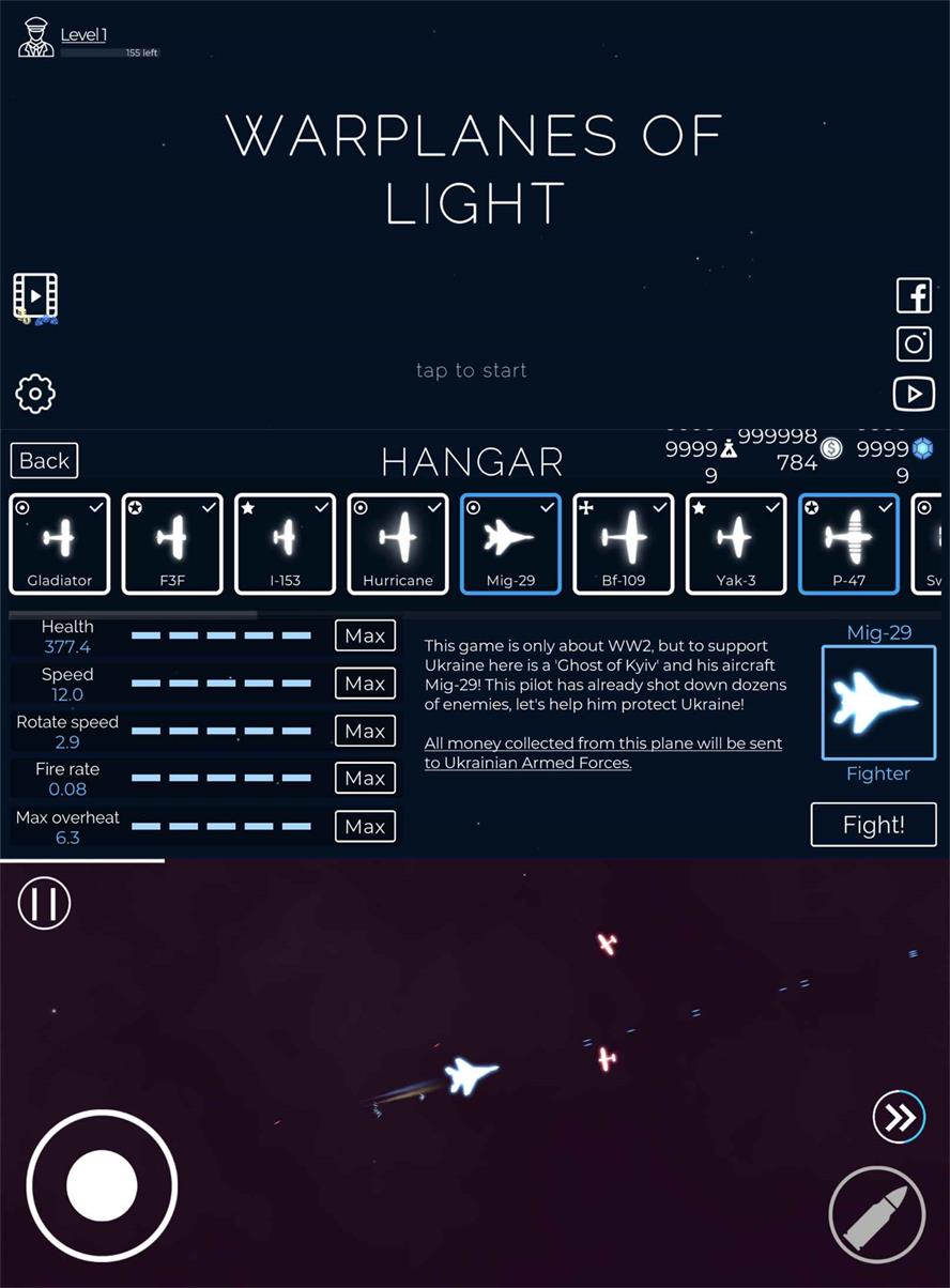 光之战机是一款横版飞行she击游戏。在飞行的世界里选择你的座驾,在黑暗的夜空中驾驶你的座驾击落所有来袭的飞行器,让他们在黑暗中坠落,解锁无限金钱。