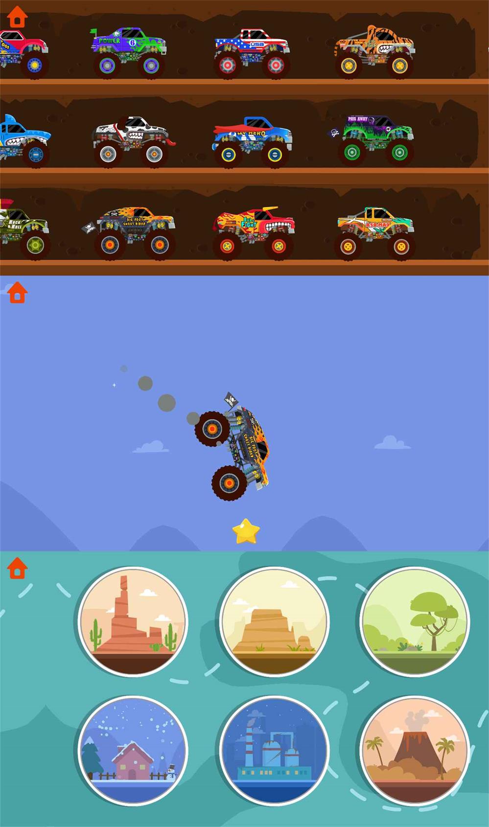 大脚车总动员是一款画风精美的休闲娱乐闯关游戏。多种模式地图,超多各种级别车辆任意挑选,驾驶大脚车翻越障碍,飞上吊桥,取得第一赢得比赛。(车辆地图解锁)